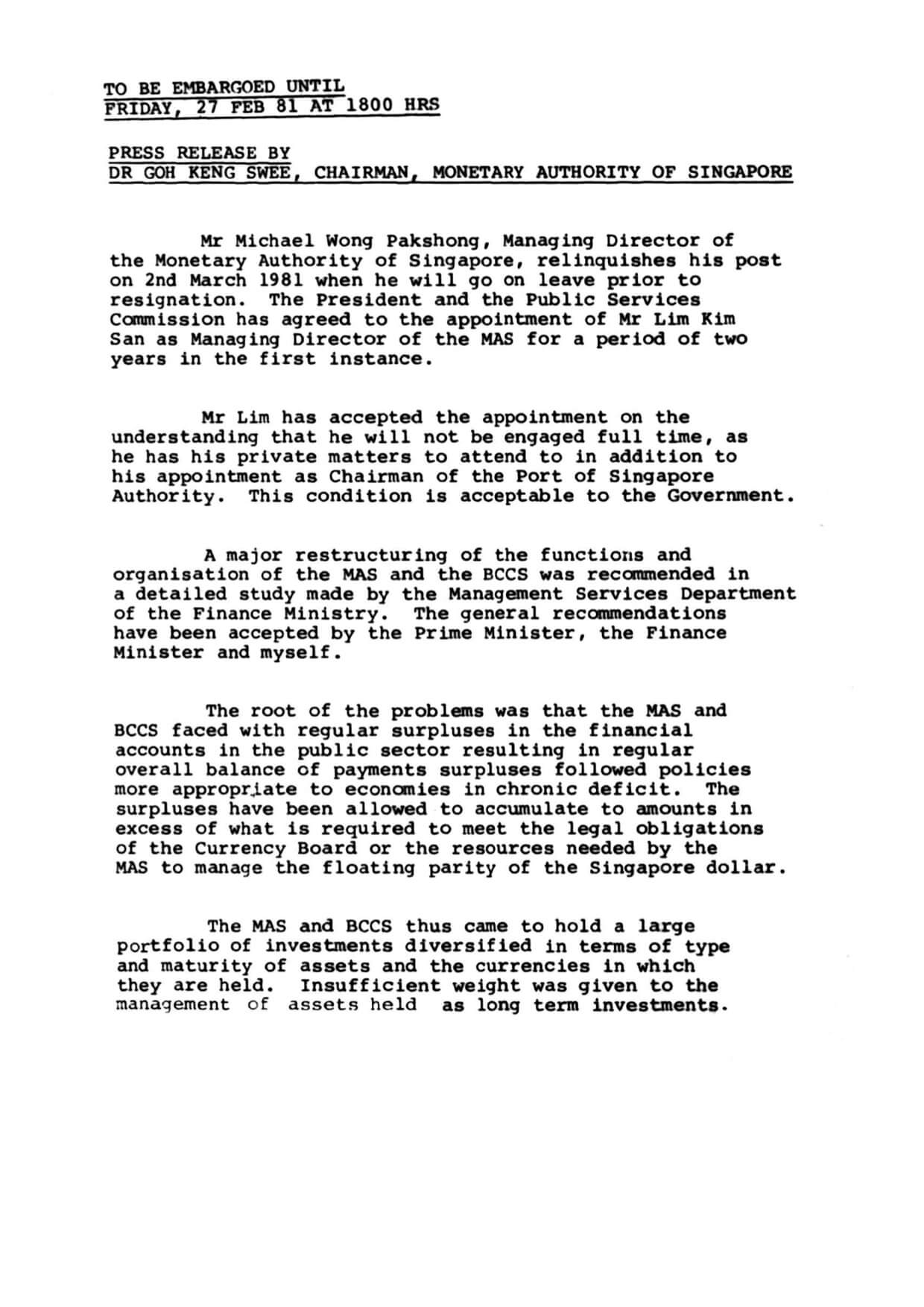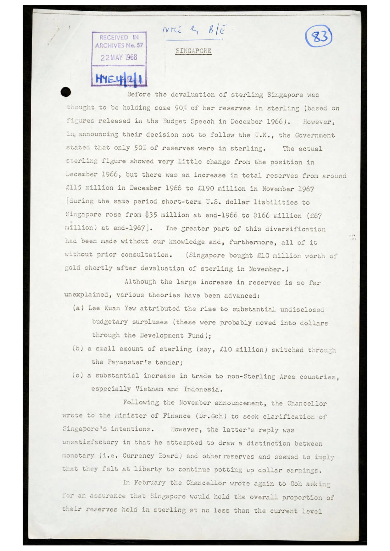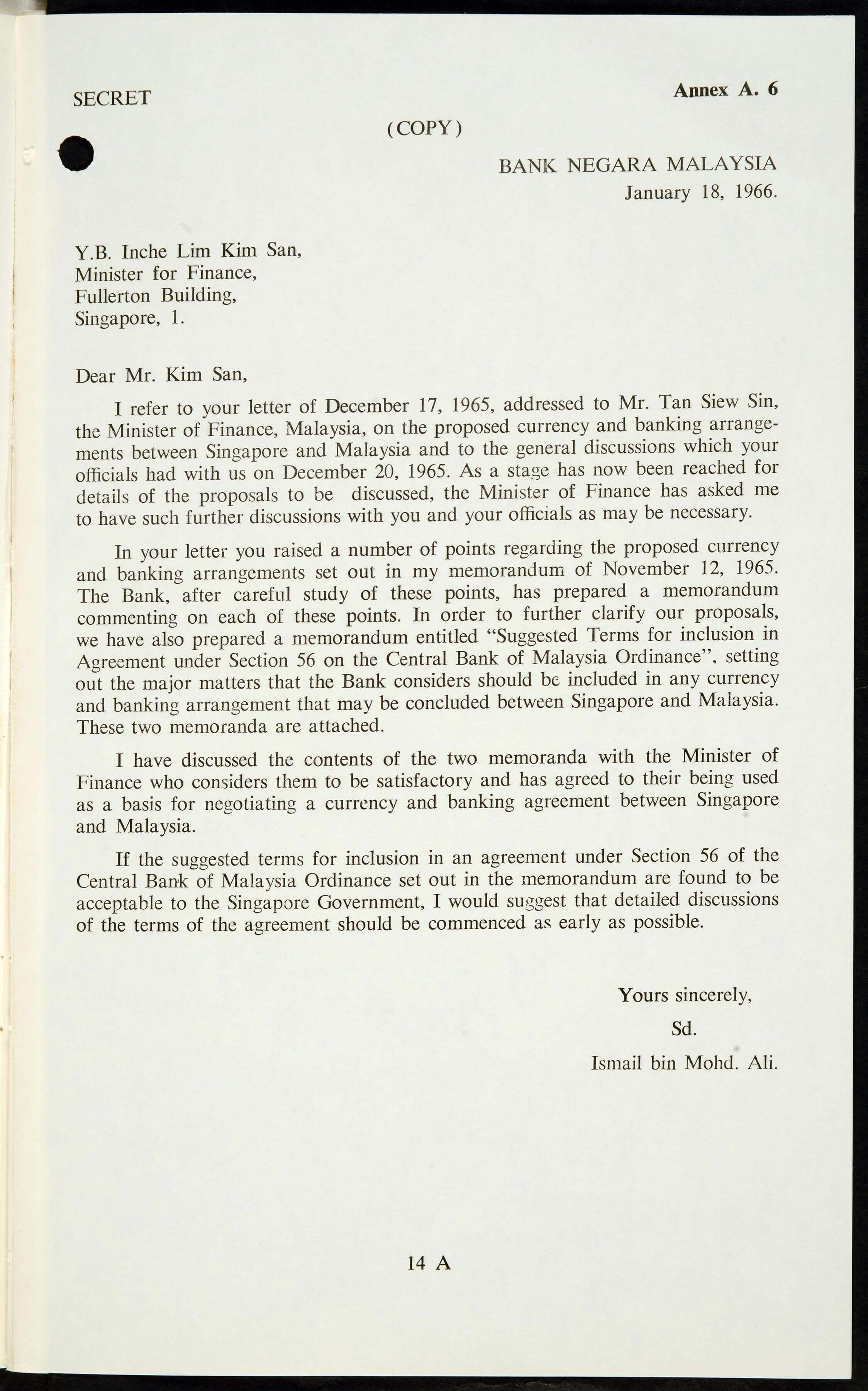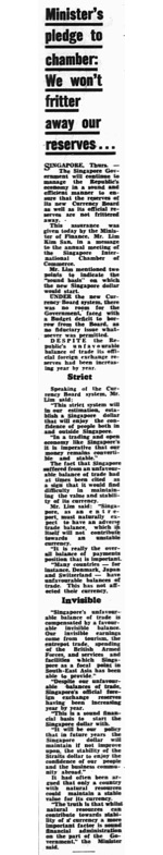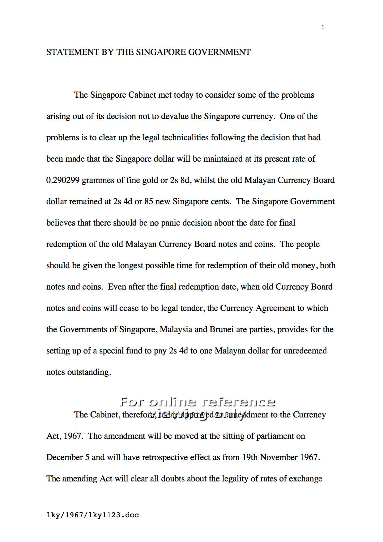 Statement by Mr Lim Kim San the Minister of Finance entitled "Common Currency and Banking System", Singapore Parliament Reports, Vol 25, Issue No 5, Sitting date: 26 August 1966 at Col 267