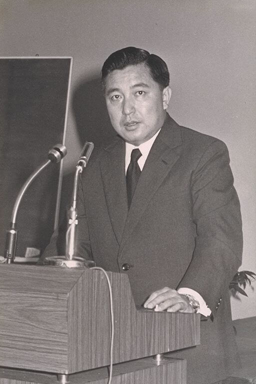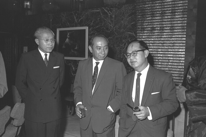 Dr Goh with his cousin, Malaysian Finance Minister Tun Tan Siew Sin, (to Dr Goh's left) at dinner hosted by The Four Chambers of Commerce